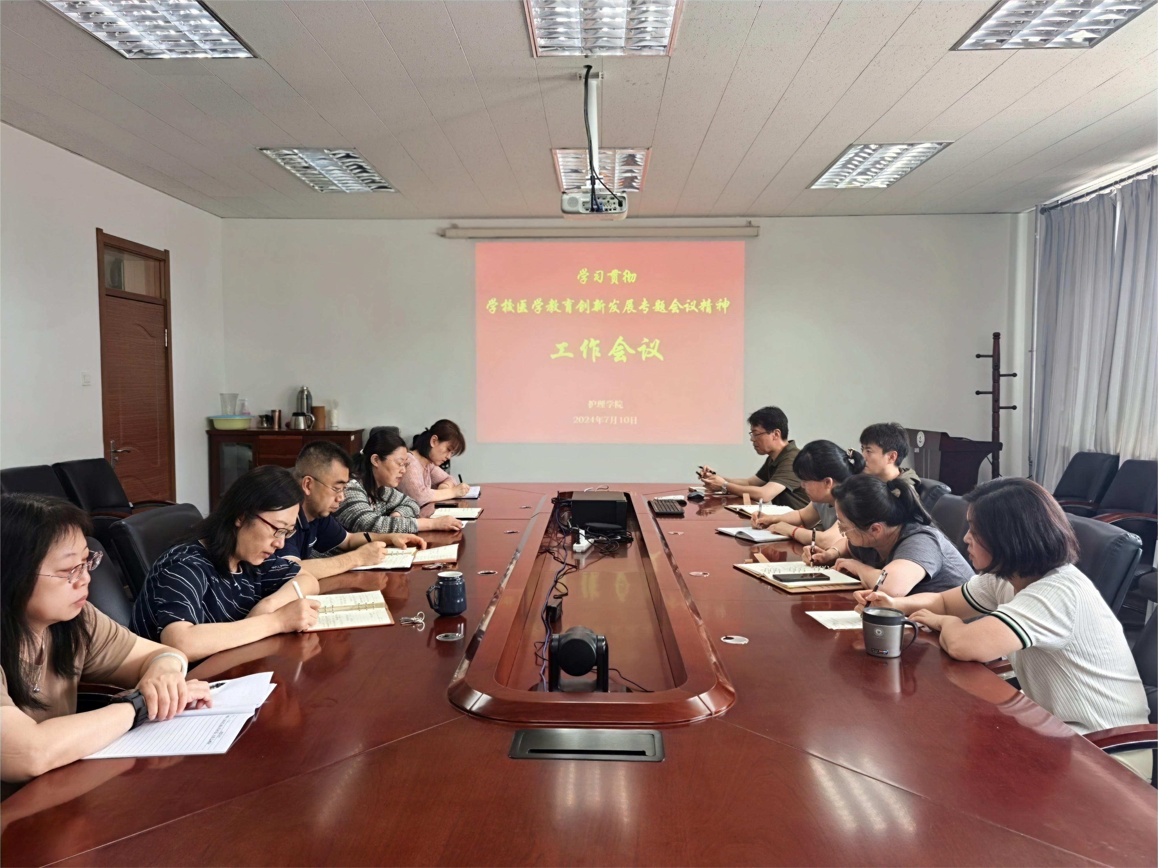 2024 年 7 月 10 日,9428cn太阳集团古天乐在三楼会议室召开学习贯彻公司医学教育创新发展专题会议精神工作会议。公司领导班子成员、党委委员、纪委委员、教学科研中层部门、党委办公室和行政办公室相关人员参加了本次会议,会议由公司党委书记韩月波主持。