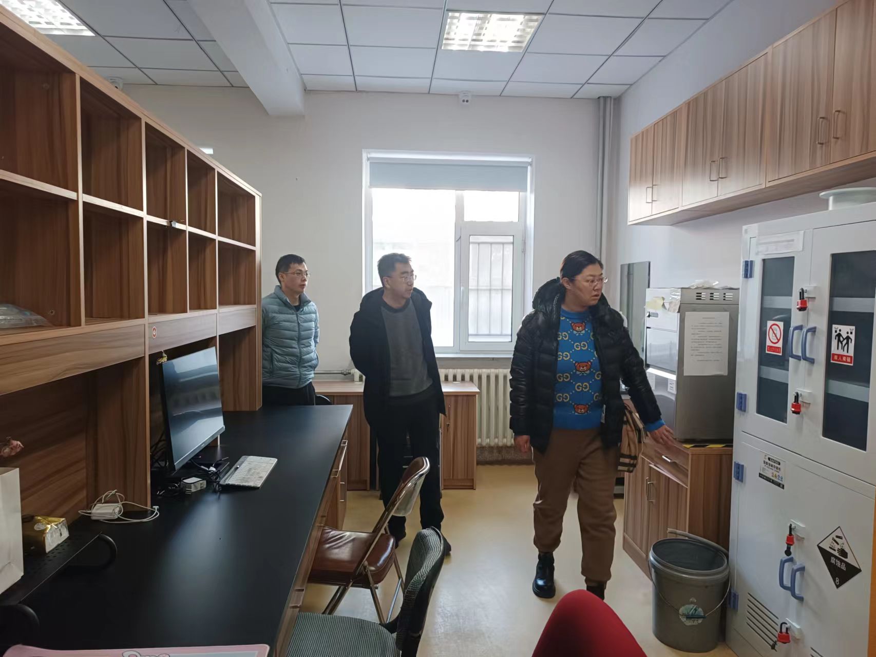 1月27日上午,韩月波、李峰、行政综合办公室主任杨鹏、科研实验室助理张美双组成检查组,结合公司下发《高校消防安全整治清单》和《公司实验室消防安全整治清单》要求的检查内容,对行政办公楼以及科研实验室进行全面检查工作,全面筛查各行政办公室以及科研实验室消防及安全隐患,检查实验室管理及导师值守及监督情况。检查期间,韩月波书记与同学们亲切交流,详细了解大家的学习生活状态,全面掌握留校员工假期安排、实验、学习及生活等情况。她叮嘱同学们要提高安全意识,严格遵守公司假期实验室管理相关要求。走访过程中,对办公室的电源与水源等进行了检查,同时重点对含有易燃易爆物品及其他危险源的实验室进行全面排查,明确安全责任,落实安全措施。结合1月20日由李峰副经理带队,实验中心主任张秀英、科研实验室助理张美双对9428cn太阳集团古天乐护理教学实验室、康复治疗教学实验室、以及科研实验室寒假前检查结果,以及此次检查中发现的安全隐患问题,韩月波书记、李峰副经理对行政办公楼及各实验室安全隐患进行了全面梳理,指出要针对存在的问题建立安全隐患台账,逐条解决。通过本次走访和安全检查,进一步排查了公司办公楼及实验室相关危险因素,全力保障公司师生度过一个安全祥和的假期。