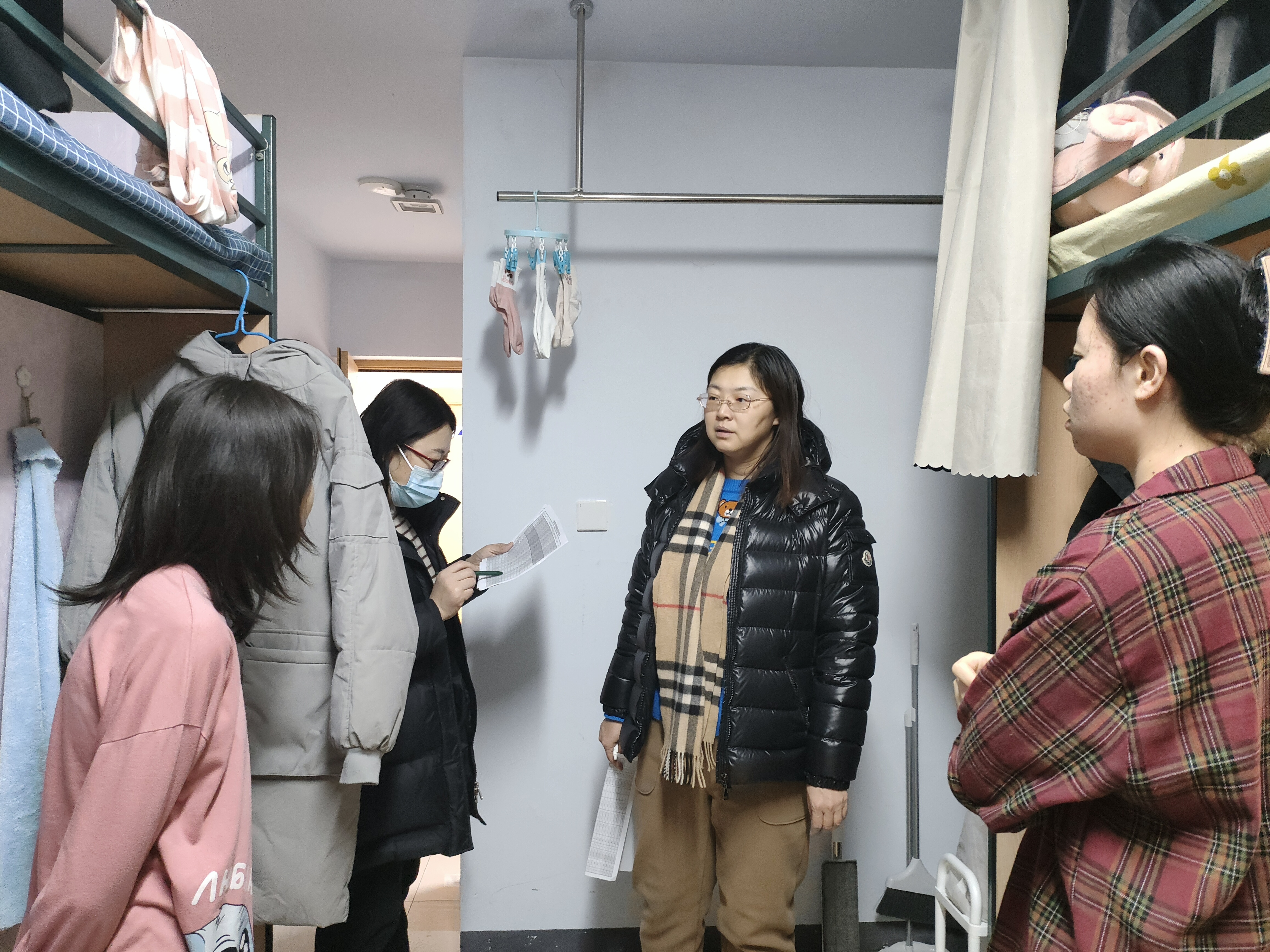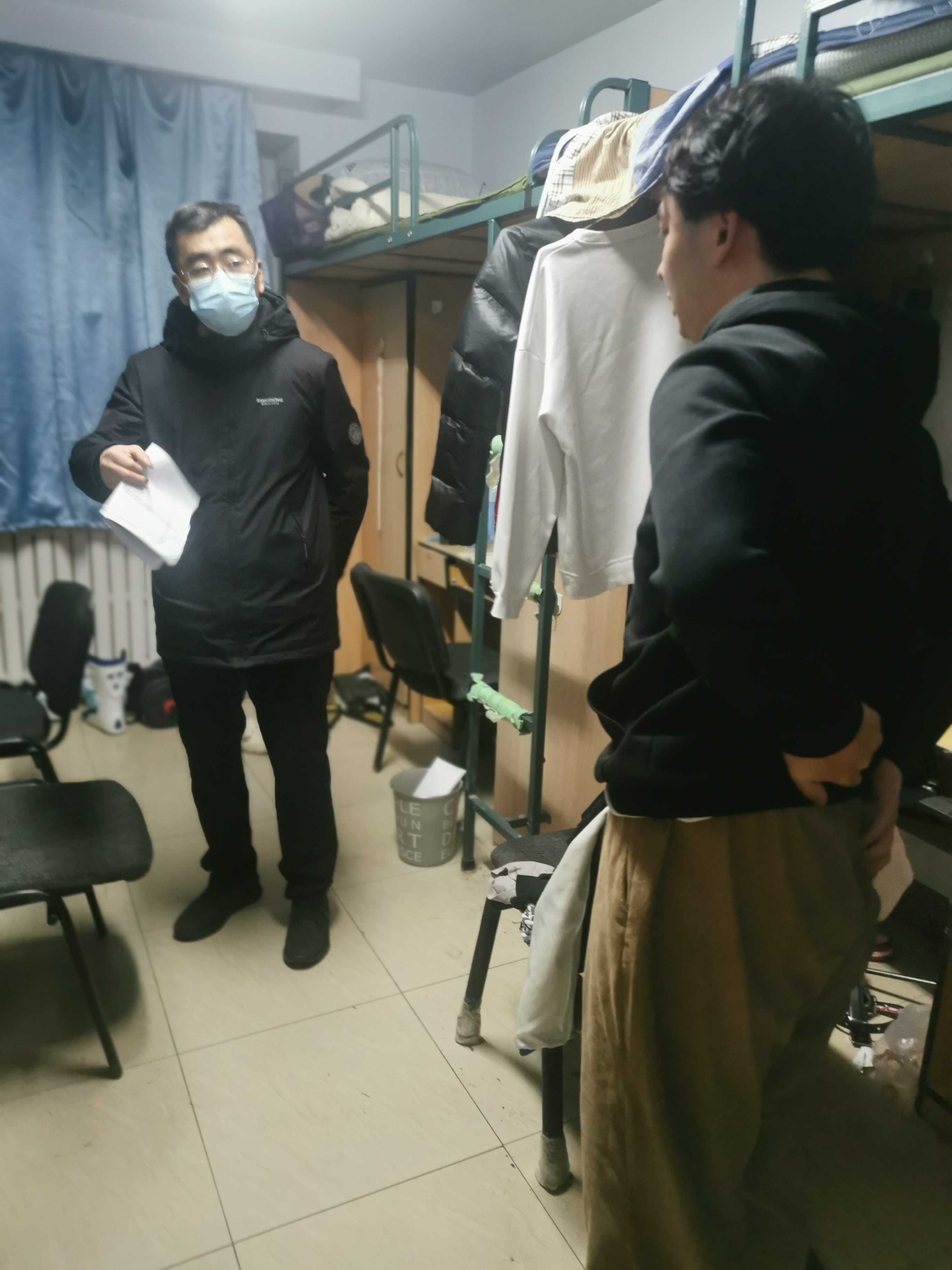 1月26日晚,韩月波、李峰、党委副书记兼副经理葛宗梅、研究生秘书、本科生辅导员,深入新民五公寓、六公寓、七公寓、十一公寓以及北区四公寓所有留校员工寝室,逐一与员工交谈慰问,了解员工生活、学习、科研、实习情况,叮嘱员工注意身体、注意安全;同时再次强调消防安全常识,要坚决杜绝违章用电,并对寝室存在的安全隐患进行排查、提醒,筑牢安全底线。