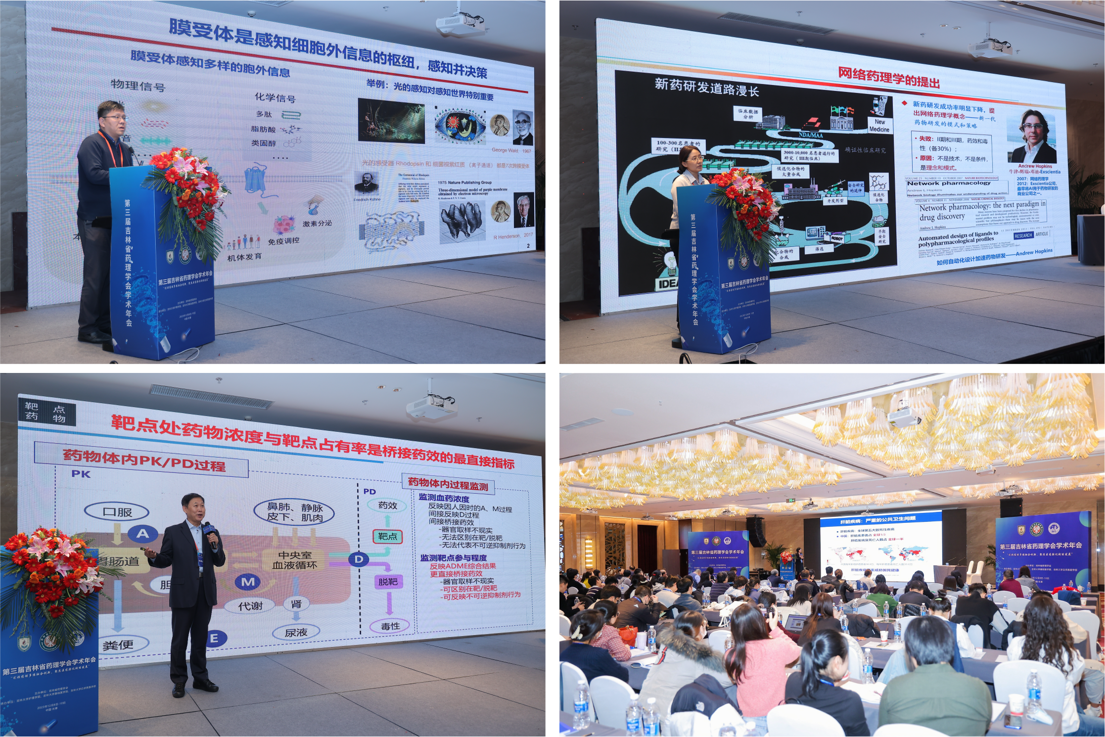 在大会上午的特邀报告中,国际欧亚科公司院士、中国医学科公司北京协和医公司药物研究院副经理、中国药理学会原理事长杜冠华教授做题为“防治糖尿病神经病变药物研究进展”的学术报告,报告详细介绍了目前抗糖尿病药物新进展以及防治糖尿病神经病变的治疗策略,并以丹酚酸 A 片的开发进行实例讲解新药开发。南方医科大学药公司经理、国家杰青/优青获得者毕惠嫦教授以“PXR 在药理学的新角色”为题,详实介绍了核受体 PXR 调控促进肝增大与再生、肝纤维化、肝脏肿瘤以及胆汁淤积等方面的新机制。国家杰青获得者、教育部“长江学者”、国家重点研发项目首席科学家、中山大学潘景轩教授做题为“肿瘤干细胞的转录及药物干预”的学术报告,围绕 Prmt7 调控慢性粒细胞白血病干细胞活性的上下游通路与药物开发进行了详尽的报告。三位特邀专家的报告精彩纷呈,从学科前沿论述到科学问题的解决、思路新颖,现场掌声不断。