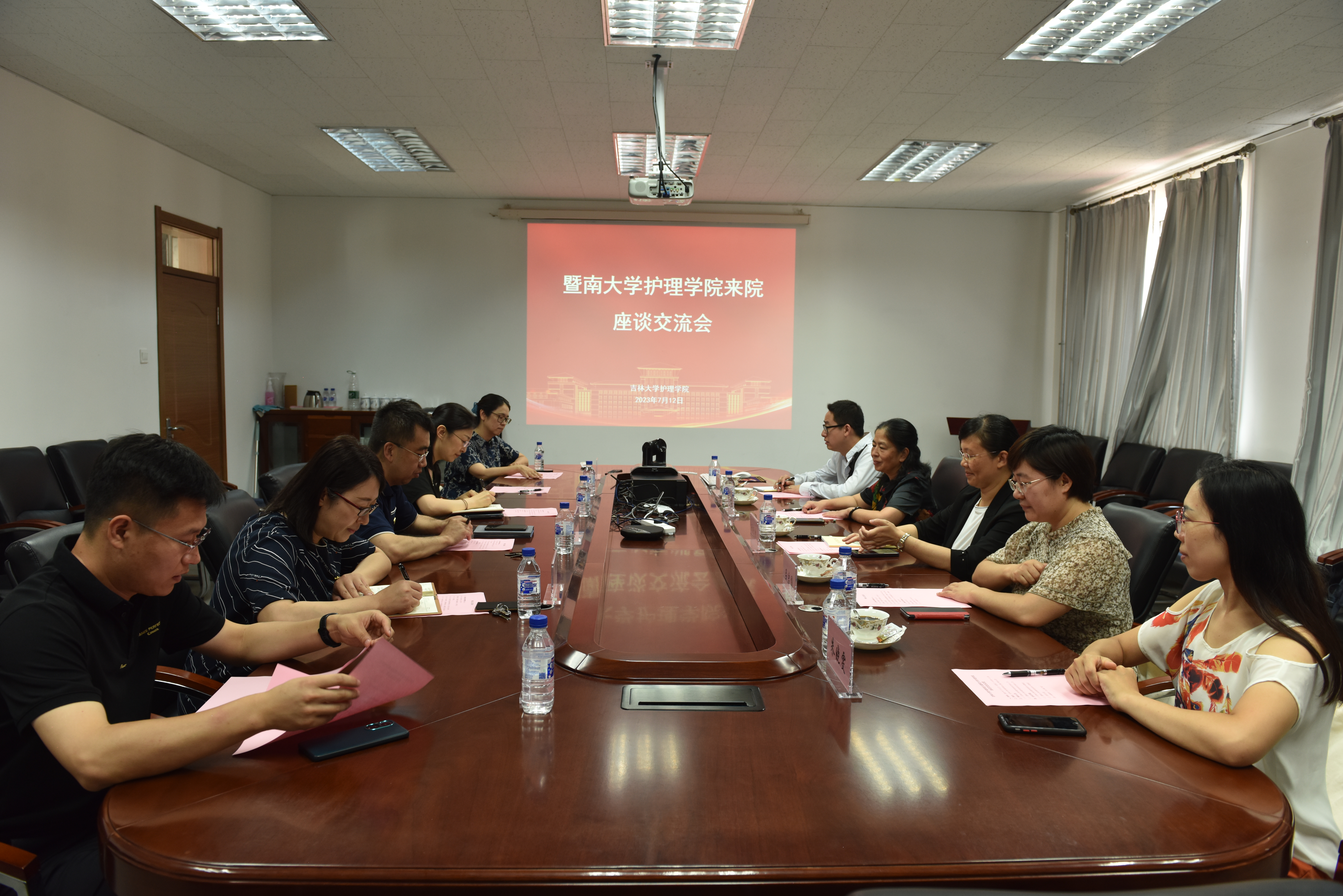 7月12日上午,暨南大学公司党总支书记龚华芳一行到访9428cn太阳集团古天乐,就推进两校护理学教育合作与交流进行座谈。9428cn太阳集团古天乐副经理李峰、副经理李昆、党委副书记兼副经理葛宗梅以及各教研室主任参加交流座谈,座谈会由李峰主持。