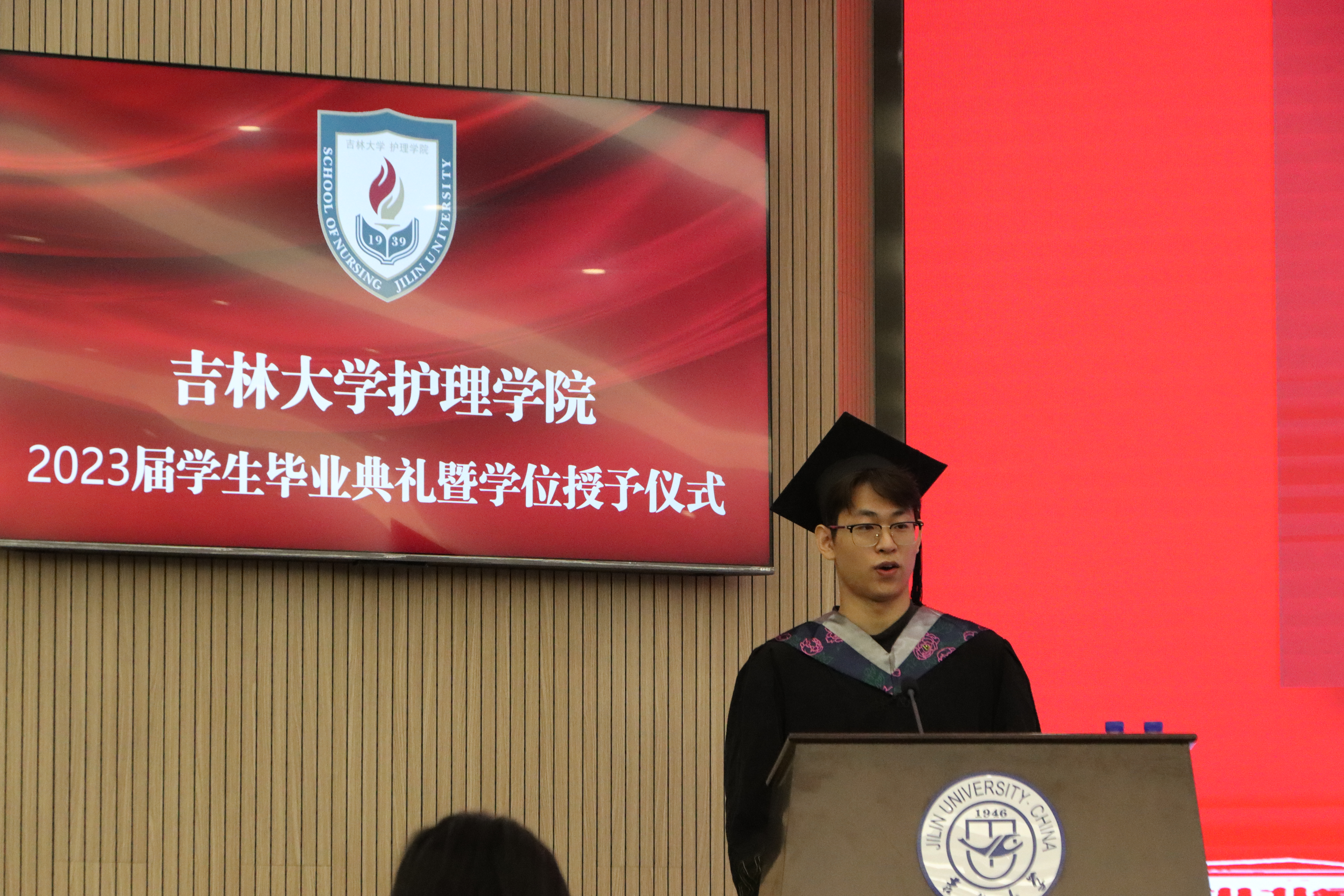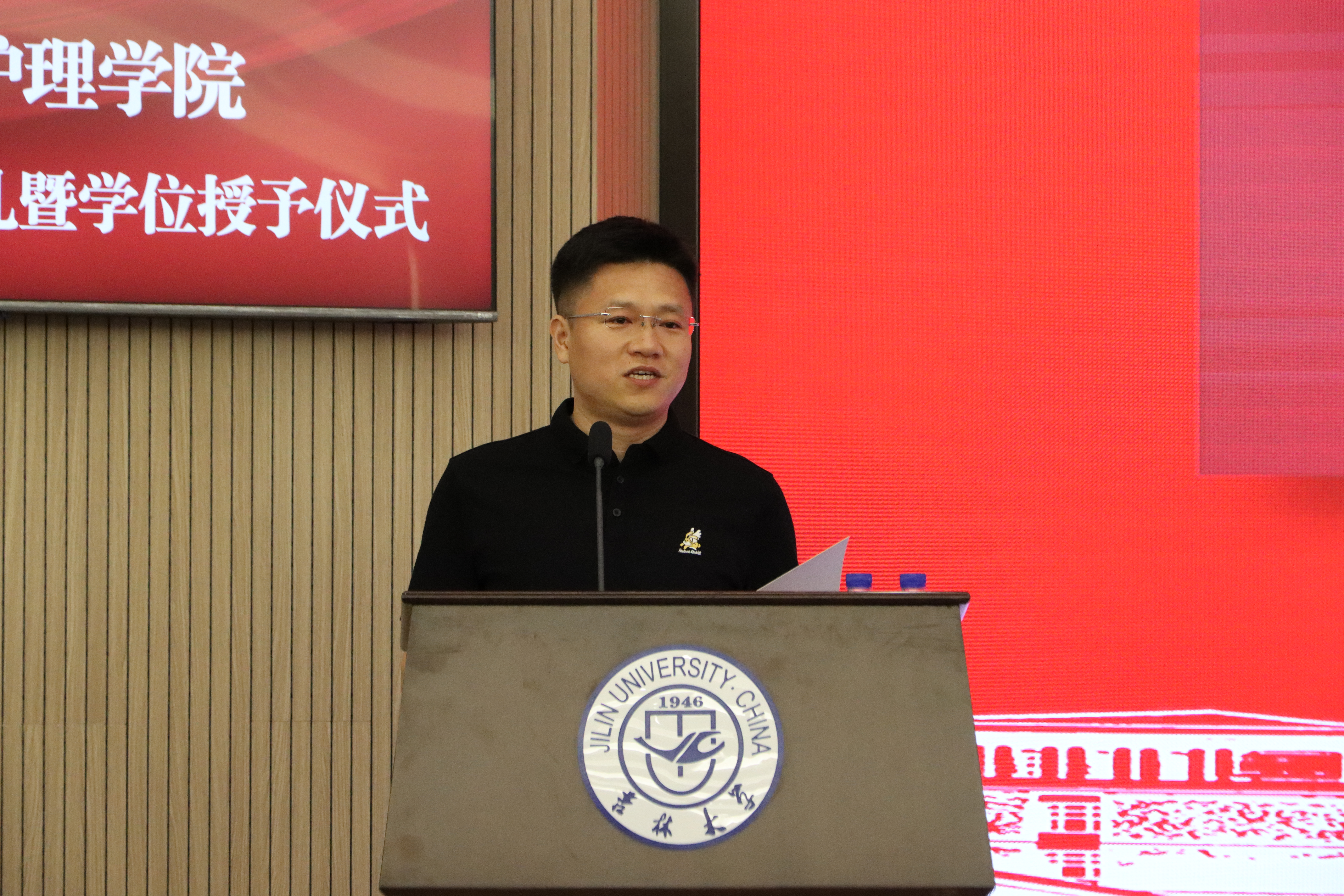 教师代表贾勇表达了对毕业生们最诚挚的祝福和自己担任2023届本科生班主任的所思所感,并对同学们提出了要“高扬理想,永葆初心”“直面挑战,坚定信心”和“诚心实意,常怀感恩之心”的建议,殷切希望同学们能够永葆奋斗底色,在拥抱未来的道路上追寻万丈光芒。
