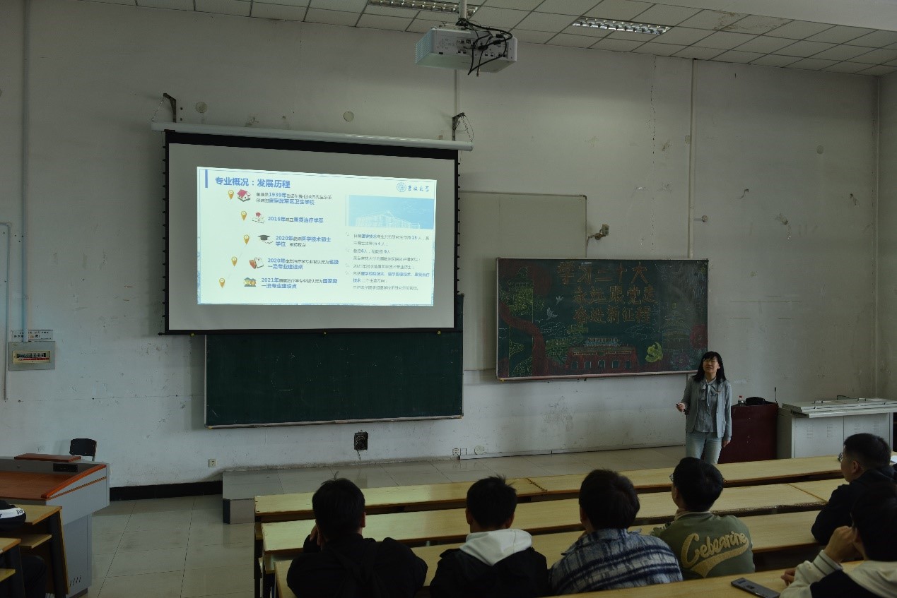 本次研究生招生宣讲由经理助理、人文教研室主任贾勇副教授和康复治疗学教研室主任赵丽晶副教授进行宣讲。两位老师分别从护理学和医学技术两个一级团队建设情况出发,就公司整体概况、专业设置、团队建设、科研团队以及招生、就业情况等进行了全面介绍。