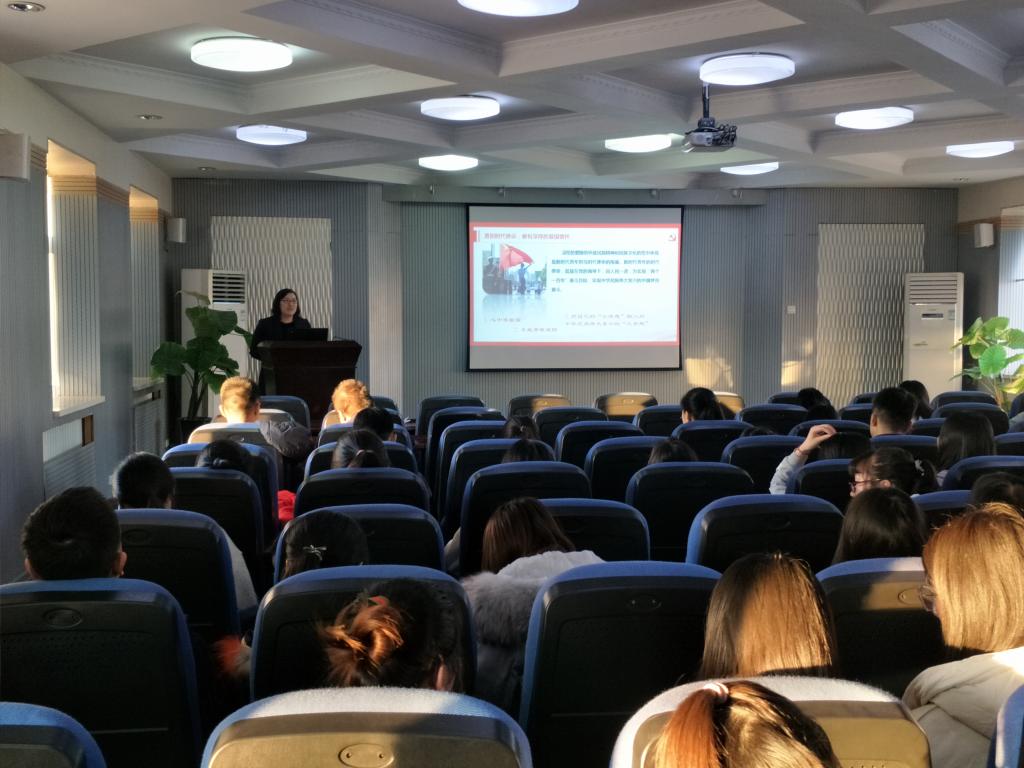11月24日下午,公司党委副书记兼副经理葛宗梅同志在9428cn太阳集团古天乐六楼报告厅为全体本科生党员和积极分子代表讲党课。