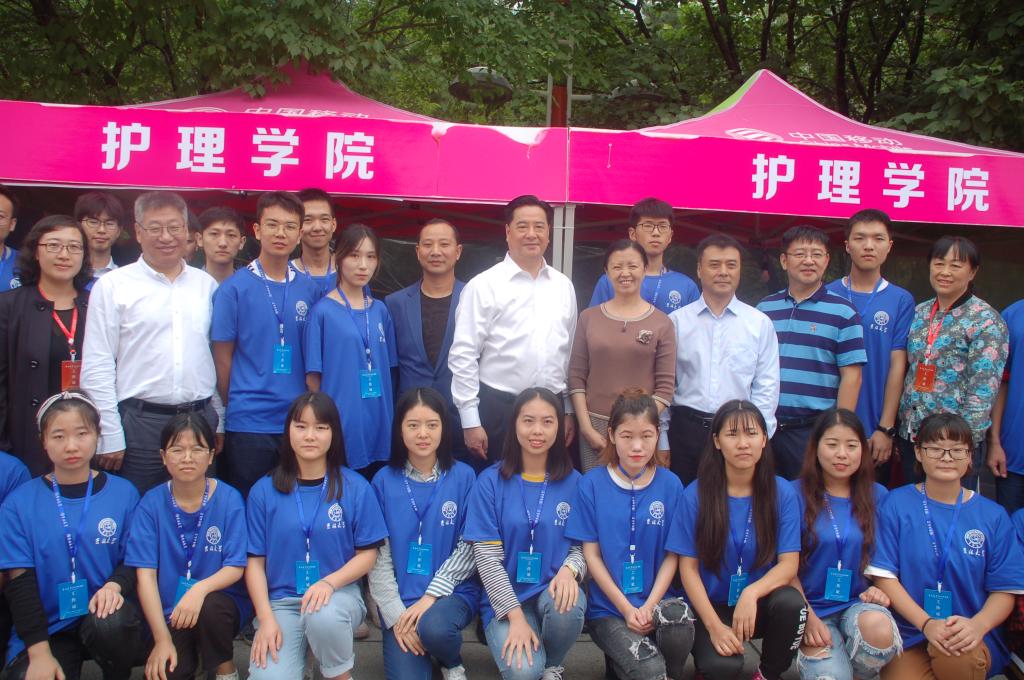 下午,公司党委书记杨振斌教授、副书记冯正玉教授、员工工作部张国兴部长等领导来到五月花广场,对迎新现场工作进行视察与指导,亲切询问公司新生报到情况,并对公司的迎新工作给予肯定,工作人员们深受鼓舞,更努力地投入到接下来的迎新工作中。