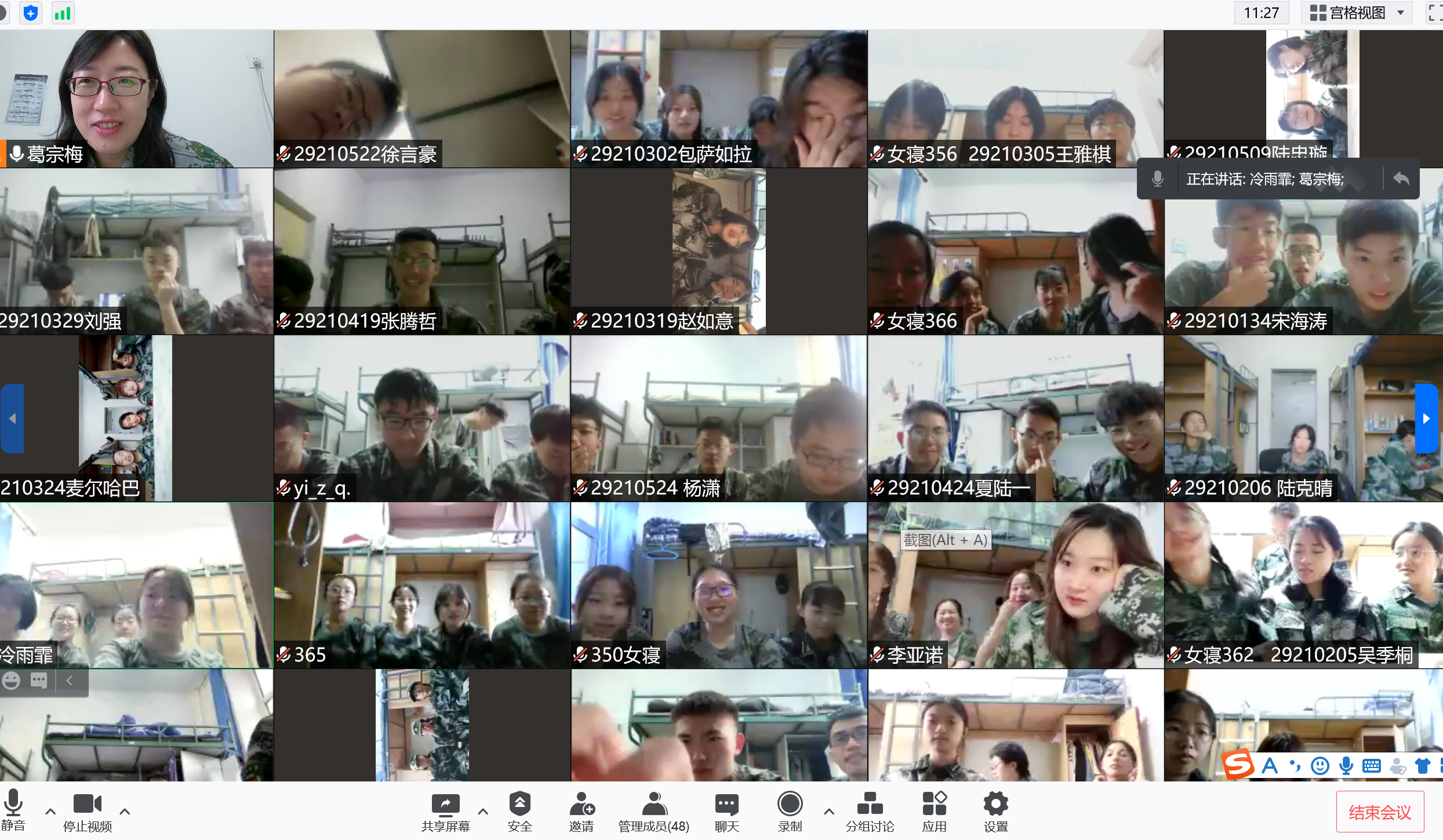 为加强员工的自我管理能力,帮助新生尽快适应大学的学习和生活,树立新生的集体意识,建设文明校风,弘扬吉大精神,增强新生同学作为“吉大人”的责任感、使命感和自豪感。2021年9月25日上午,公司党委副书记兼副经理、2021级新生辅导员葛宗梅通过线上会议方式主持召开了2021级新生年级大会,开展新生入学教育。2021级全体新生参加中。