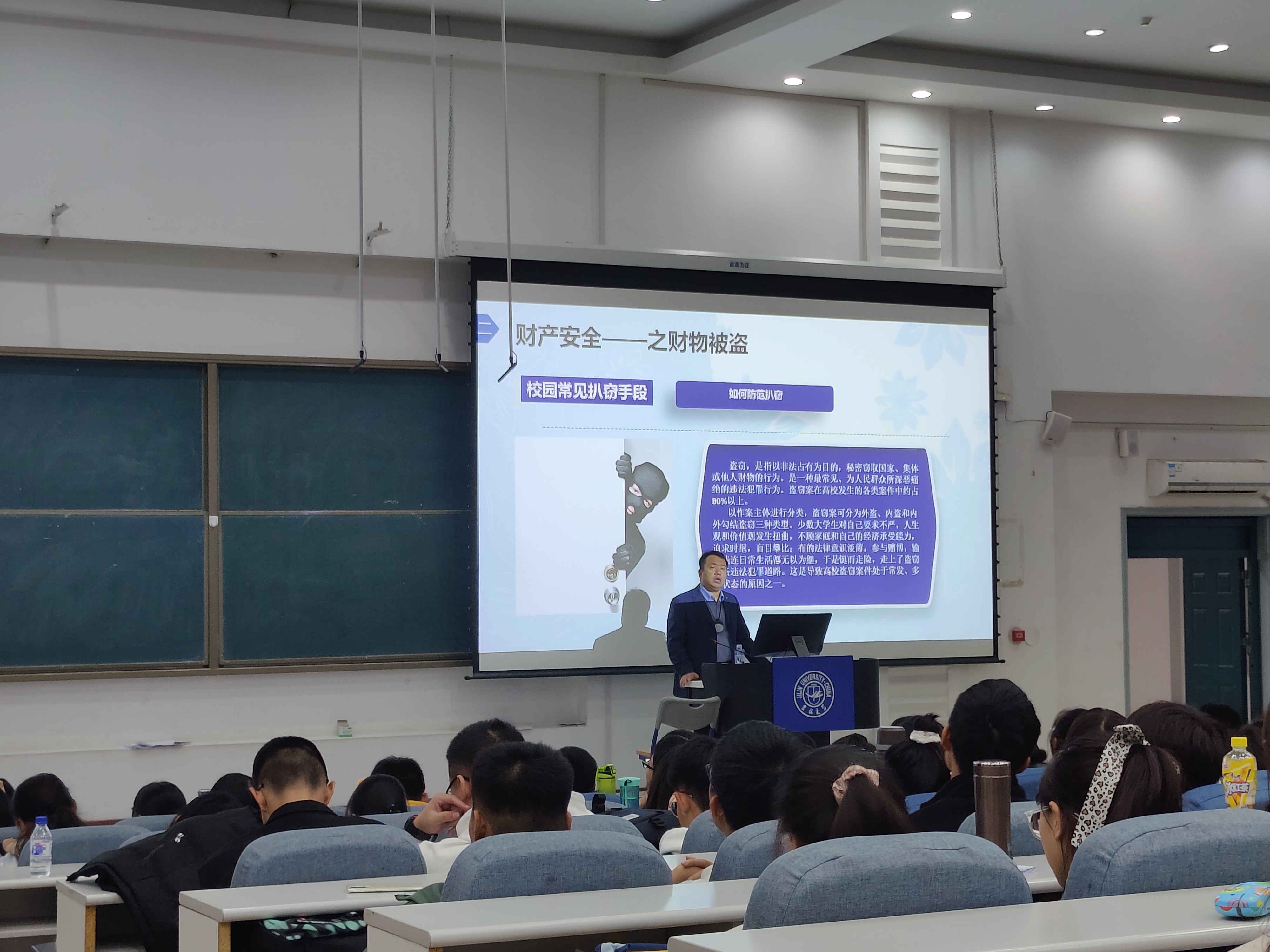 为提高2021级本科新生的安全意识,掌握必备安全防范技能,抵御安全风险,筑起安全防线,使同学们拥有更好的校园生活体验。2021年10月15日,9428cn太阳集团古天乐全体2021级本科生于经信教学楼F区5阶教室参加公司保卫处左学成老师的安全教育讲座。