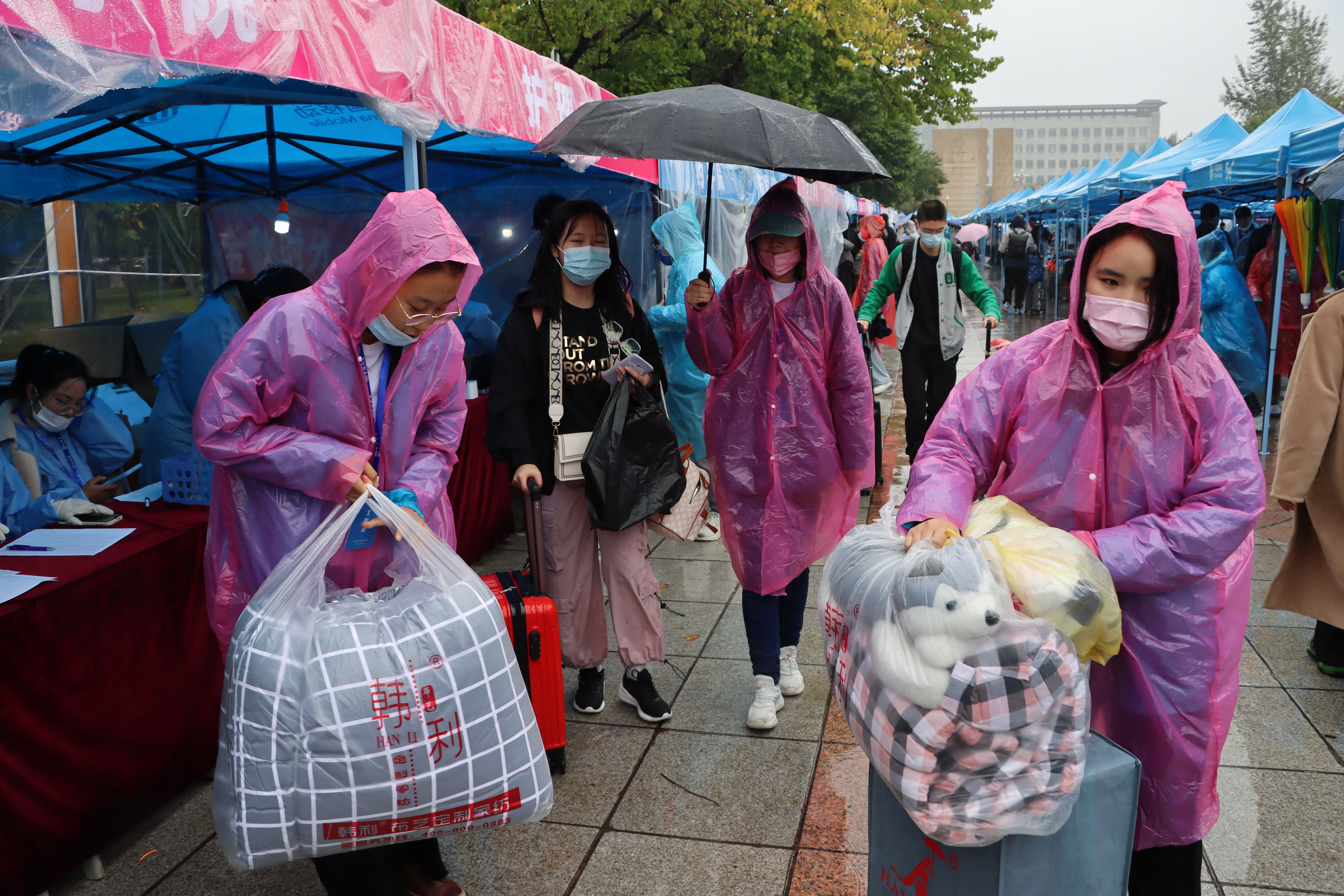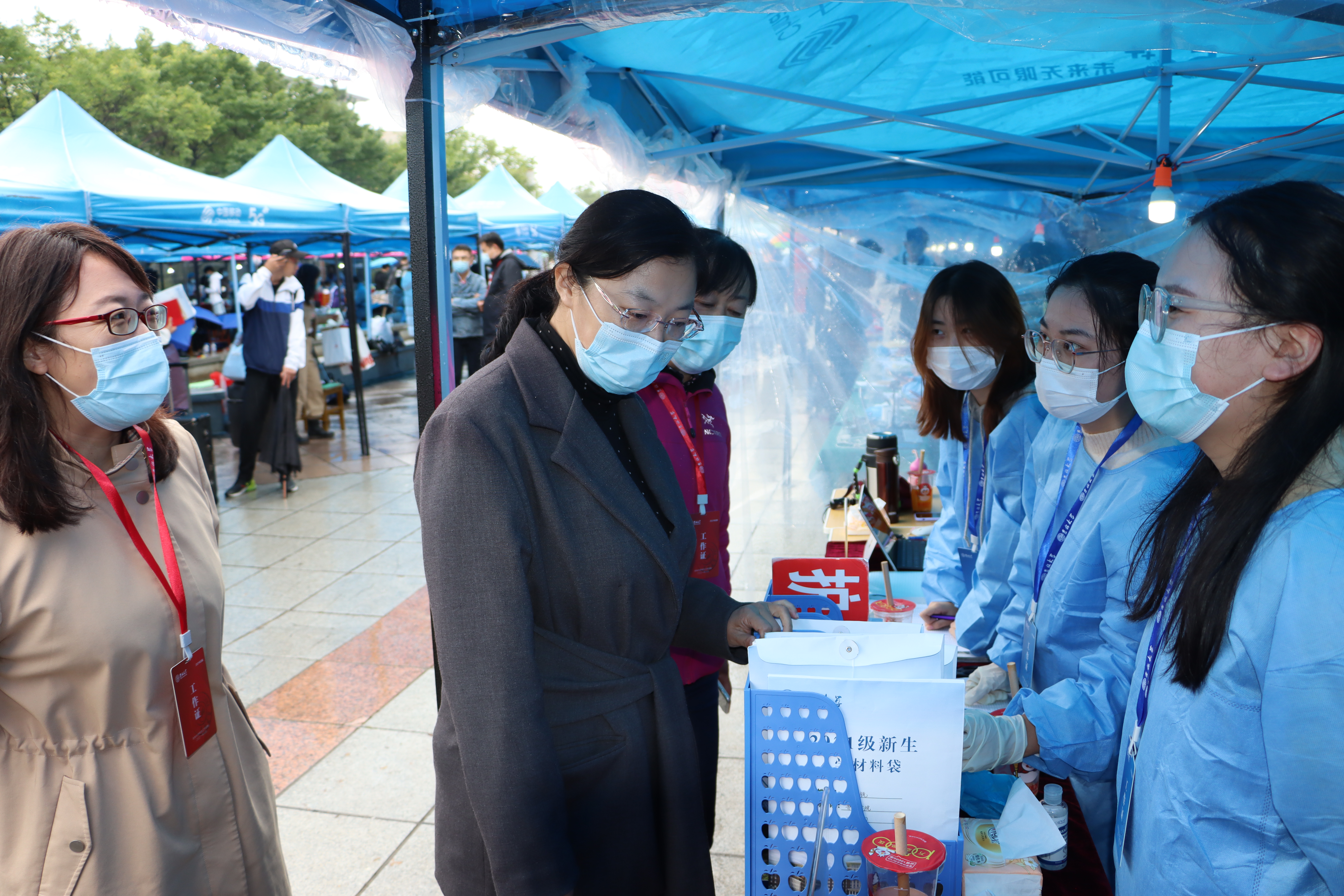 在迎新过程中,新生们井然有序地在公司迎新接待站按照报道流程依次办理报到手续,进行身份认证与领取新生材料包,在志愿者的引导和帮助下到达员工公寓。阵阵秋雨未浇灭志愿者们的热情,他们往返于校门、接待站、宿舍之间,协助新生快速完成报到、入住等工作,主动介绍中心校区各类信息,耐心解答新生疑问,帮助新生与校园美景合影,纪念同学们迈入大公司园的难忘时刻,开启全新征程。