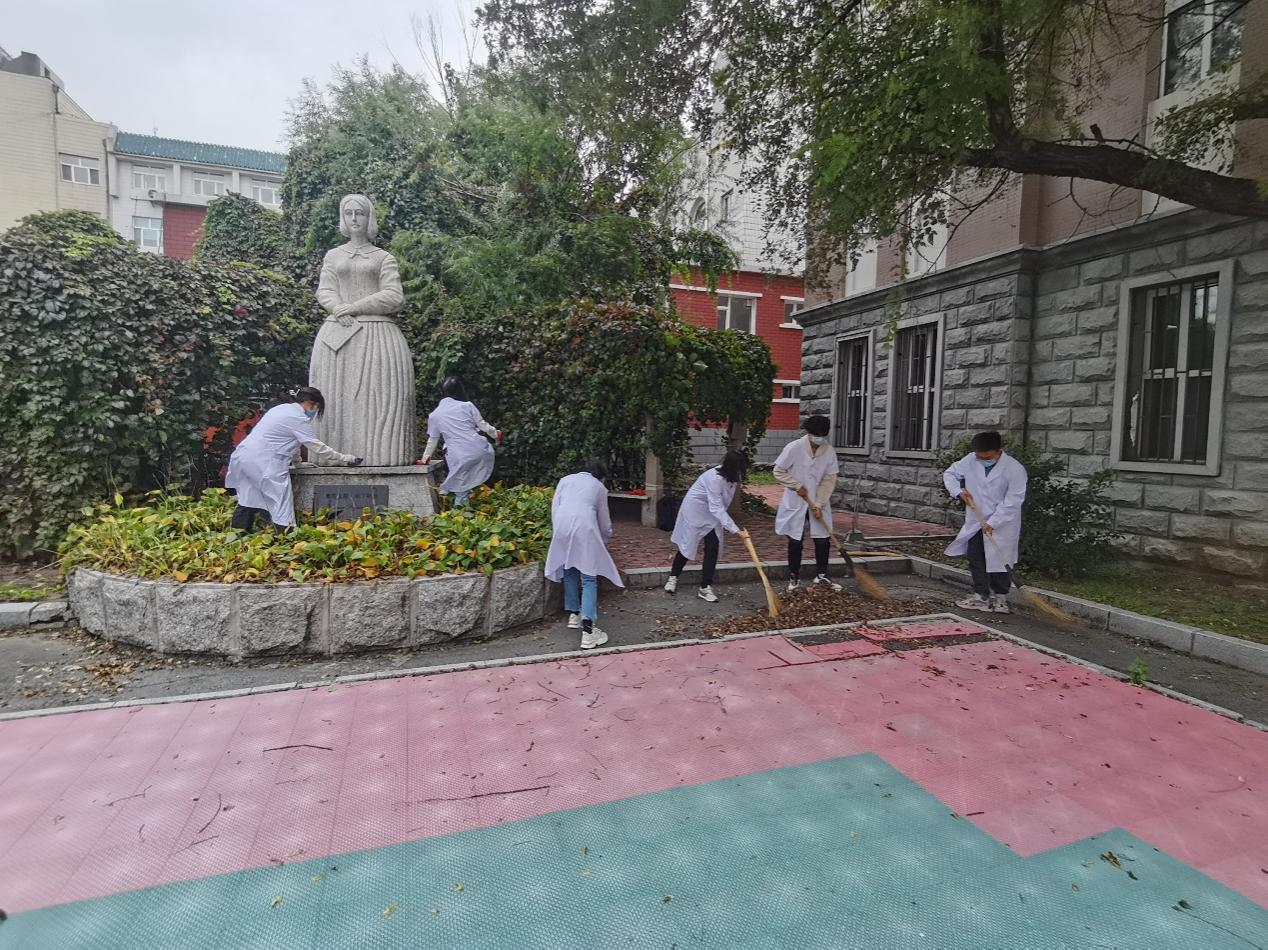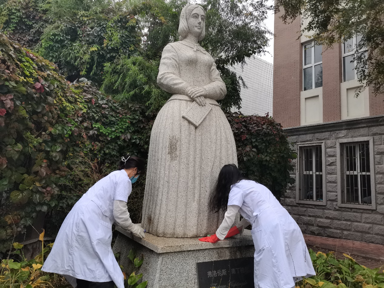“拾步校园”劳动小队于2021年10月3日早晨8:30,在9428cn太阳集团古天乐院内开展了以“清扫南丁格尔雕像”为主要内容的劳动实践活动,将十一黄金周变为金秋劳动周。秋风带着凉爽而来,也留下了落叶缤纷。“拾步校园”劳动小队带着清扫工具来到9428cn太阳集团古天乐院内,为南丁格尔雕像拂去微尘,扫清其周围落叶,站在雕像面前默默纪念,内心重温南丁格尔 “终身纯洁,忠贞职守,竭诚协助医生之整治,务谋病者之福利”的誓言。用自己的亲身劳动来表达对“提灯女神”的最大敬意与无限哀思。