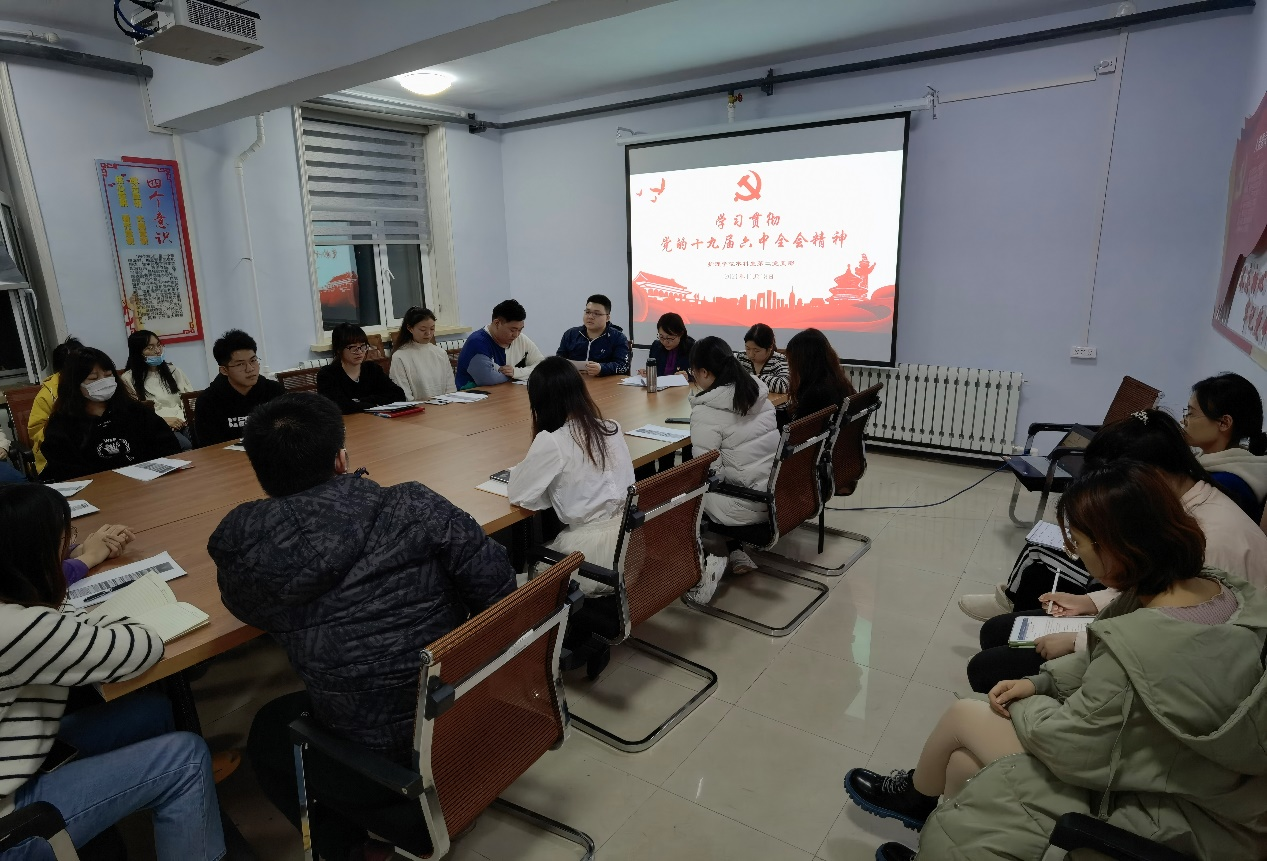 为深入学习贯彻党的十九届六中全会精神,9428cn太阳集团古天乐本科生第二党支部于11月18日晚在员工党员活动室召开了学习贯彻党的十九届六中全会精神会议。公司党委副书记兼副经理葛宗梅和支部党员参加了本次会议。