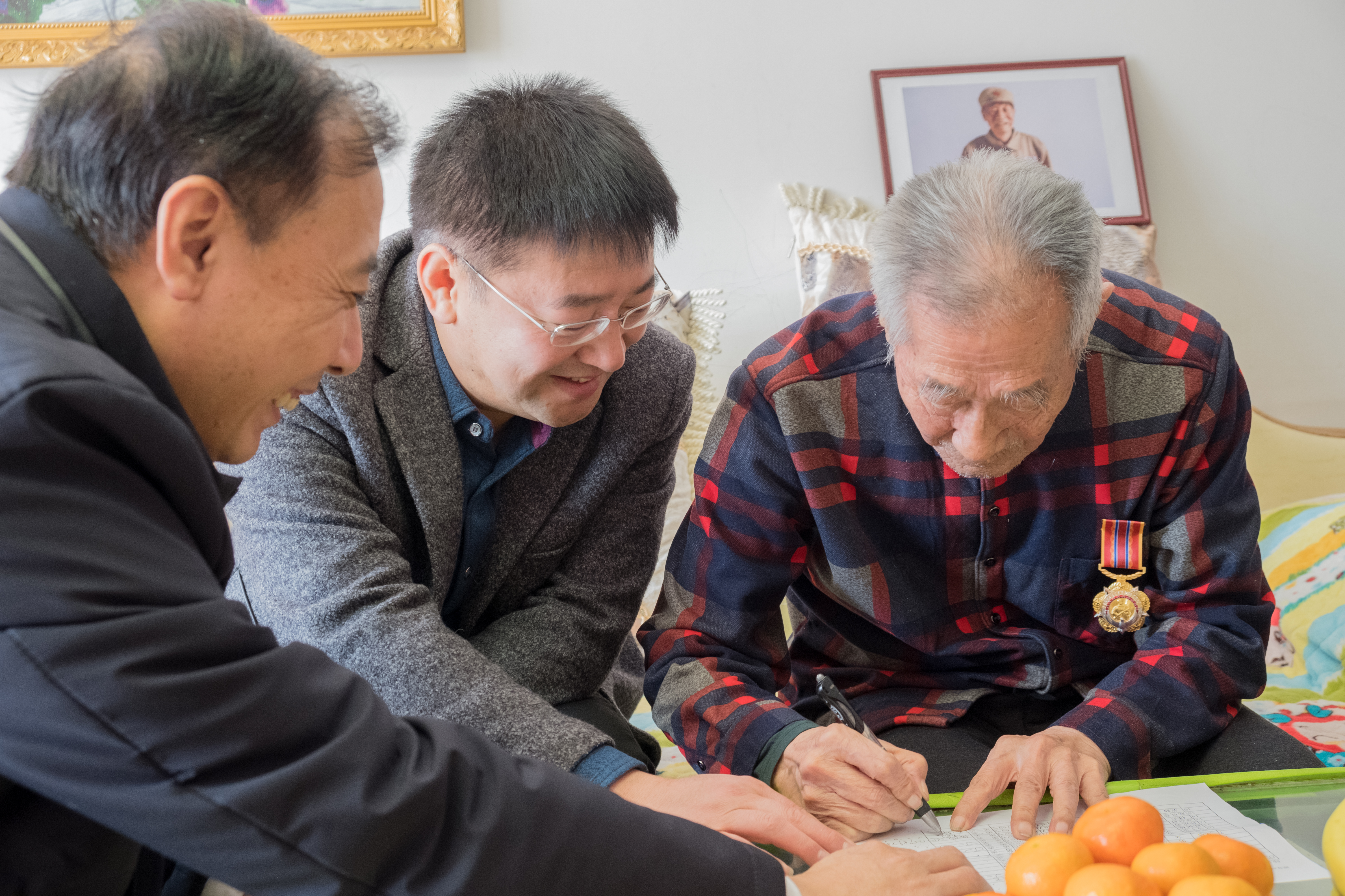 10月30日上午,9428cn太阳集团古天乐本科生第一党支部李亚琴老师、刘宇飞老师同部分员工党员,与教工党支部党员一起在公司党委书记席海涛老师和新民校区离退休办公室主任陈彦强老师的带领下,看望抗美援朝老兵赵风章同志。赵风章同志年轻时曾是白求恩医科大学的一位老师,87岁的他见到意气风发的年轻后辈们倍感高兴。在热烈地交流过程中,赵老师同大家分享了年轻时参军、参加抗美援朝战争的经历和在白医大执教时的种种故事。听完赵老师的经历,同志们百感交集,敬佩之情油然而生。他不仅是一名爱好和平保家卫国的战士,他也是三尺讲台上辛勤的指路明灯,他更是年轻一代应当学习的英雄榜样。交谈的最后,赵老师予以年轻党员殷切的嘱托,他鼓励员工党员们积极向上,工作学习中敢于直面困难、勇往直前。青年一代有理想,有担当,祖国便有了希望,同志们纷纷表示要在实践中不断提升自我,为祖国的和平与发展努力,为实现伟大复兴中国梦不懈奋斗。